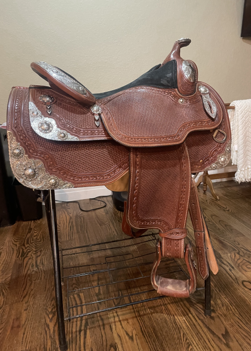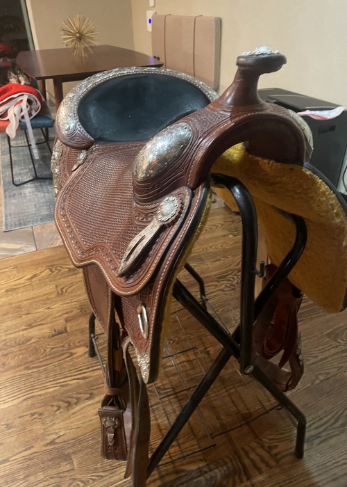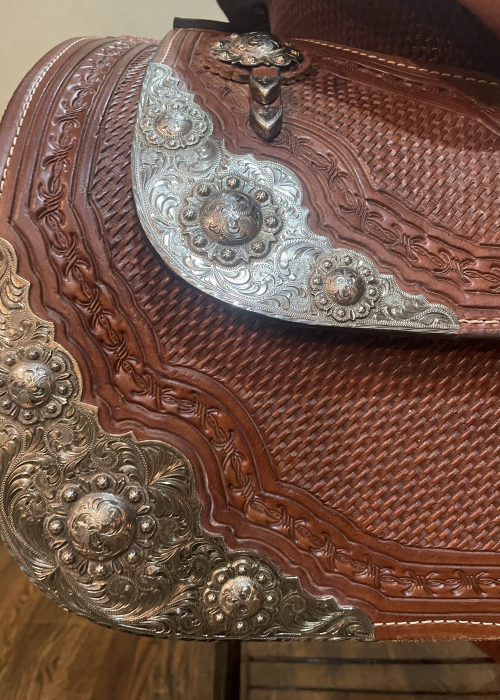 16.5” Custom Western Show Saddle, Headstall, Romal Reins, and Saddle CoverDale Chavez