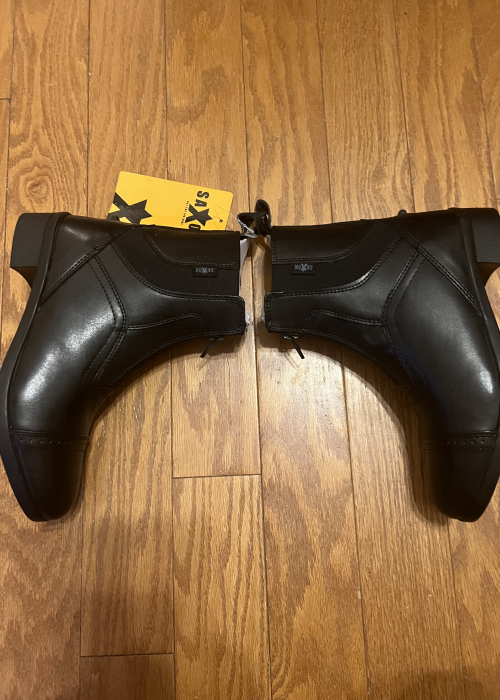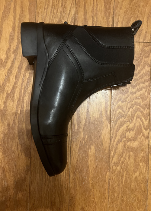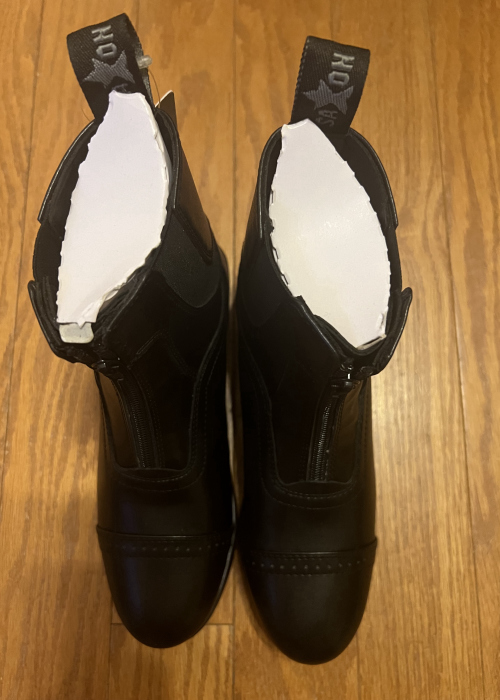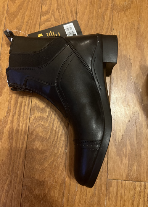 Seller's Description: About this item Premium Grained PU Material: Provides the timeless look of leather without the hassle of upkeep, ensuring lasting performance and elegance Comfort Meets Functionality: Elasticized ankle panel ensures flexibility All-Day Comfort: EVA footbed cushions your feet during long riding sessions or stable tasks Hardwearing Rubber Outsole: Built to withstand daily use, offering excellent grip and durability in all conditions Refined Details: Features a timeless pin punch toe cap design and a Saxon-branded pull tab for a touch of sophistication Hassle-Free Wear: Durable YKK zip offers easy, long-lasting performance for effortless daily use
