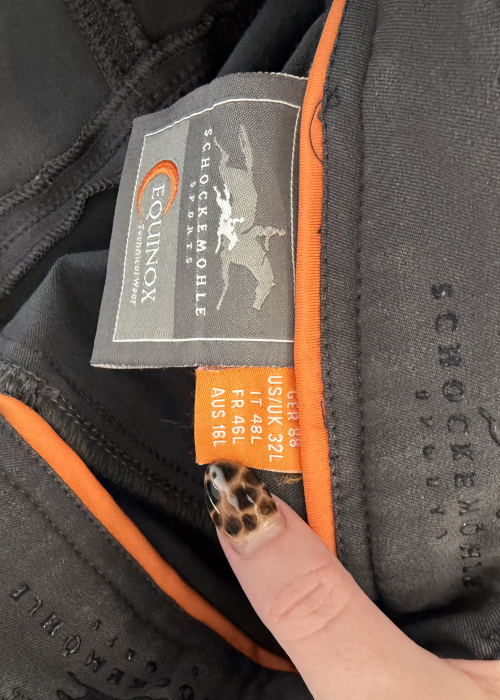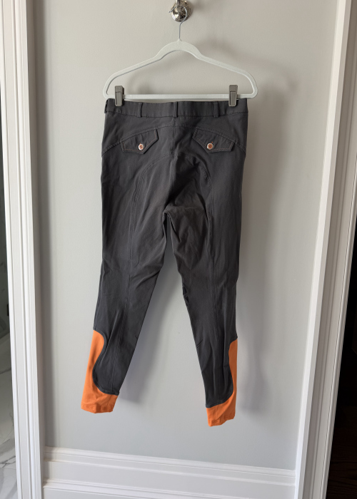 Seller's Description: Grey with orange accents riding breeches