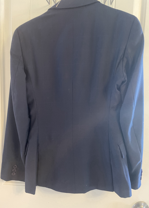 Seller's Description: Hunter/English Navy with Purple Pinstripe Women’s Show Jacket - RJ Classics Two jackets available: -Jacket A: Chest: 32"; Sleeve: 22.5"; L Front: 25"; L Back: 26" L Back -Jacket B: Chest: 28.5"; Sleeve: 23.5"; Chest: 25"; L Front: 25"; L Back: 26" $75 Each, $120 for Both