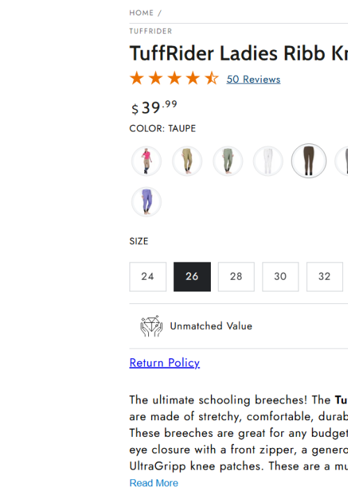 Seller's Description: New with tags! These soft breeches are perfect for the show ring or everyday schooling. 26" waist, approximately 37" leg.