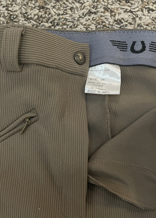 NEW Ribbed Knee Patch Breeches with Zipper Pocket, TaupeTuffrider