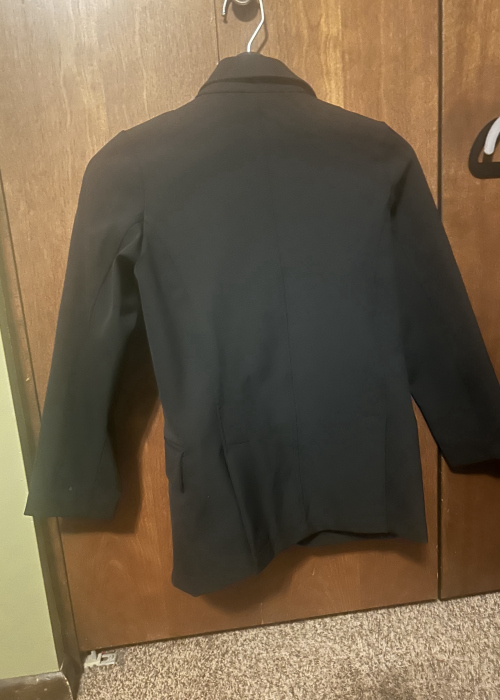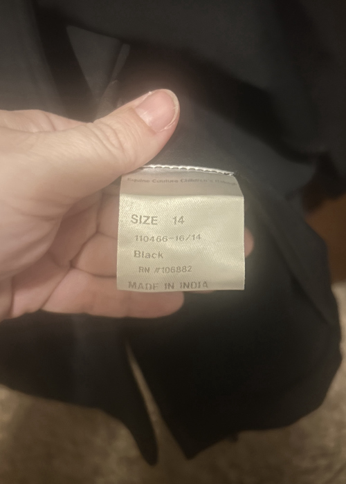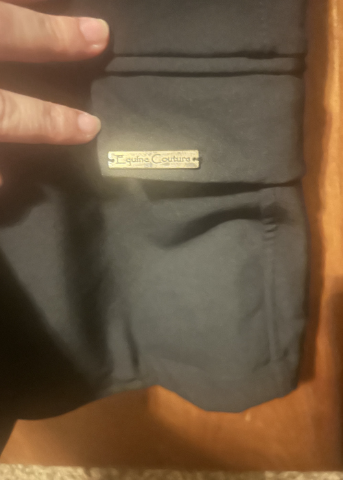 Seller's Description: Equine couture Girls jacket. Worn in 2 shows, black. Size 14. Smoke free home