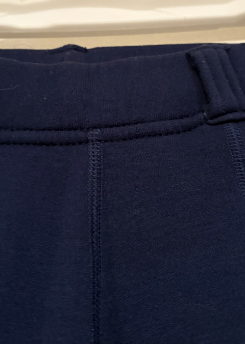 Seller's Description: This is a Navy Blue pair of winter riding breeches. They have a pocket on each leg and grips (shaped like carrots) on the inside part of the leg. The size is a children’s small and are in good condition. There are also belt loops on this pair of pants.