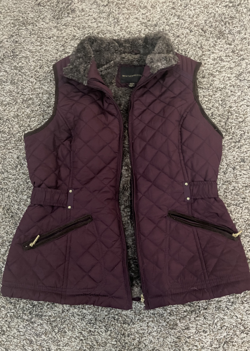 Faux Fur Lined Vest with Pockets, Dark PurpleWeatherproof