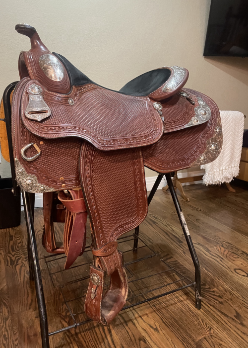 16.5” Custom Western Show Saddle, Headstall, Romal Reins, and Saddle CoverDale Chavez